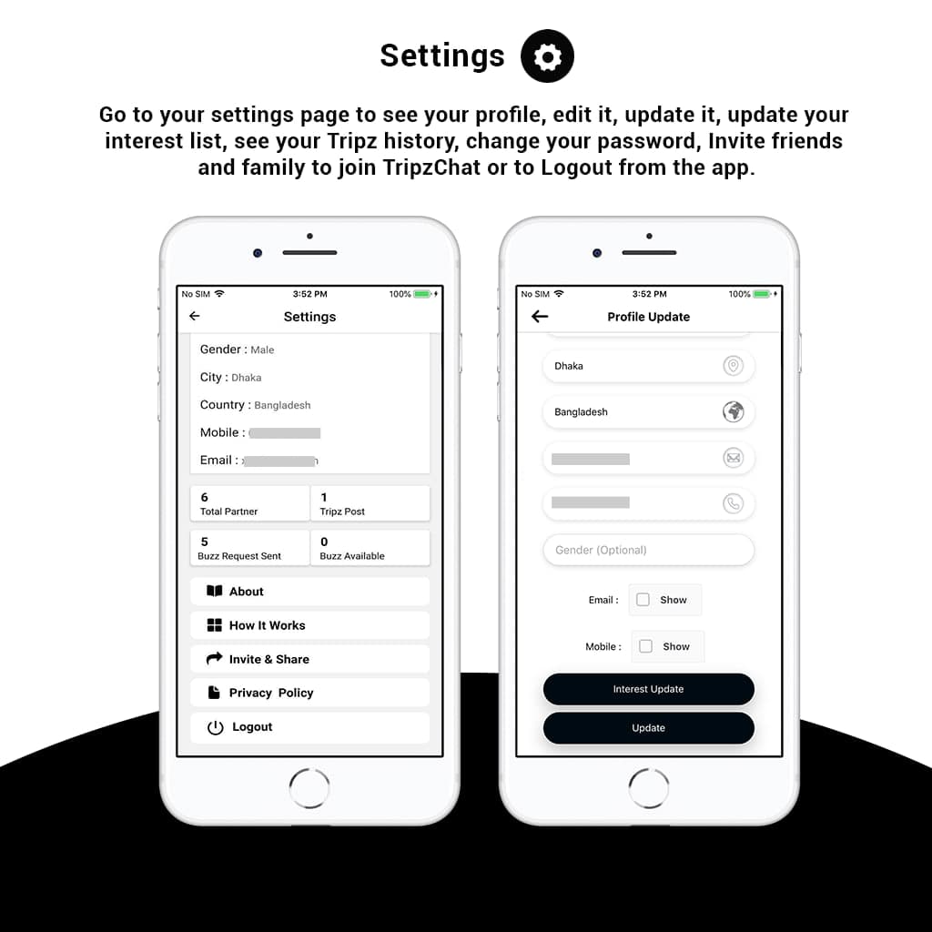 This is where TripzChat comes in handy as the app helps you to Share your Tripz, Connect